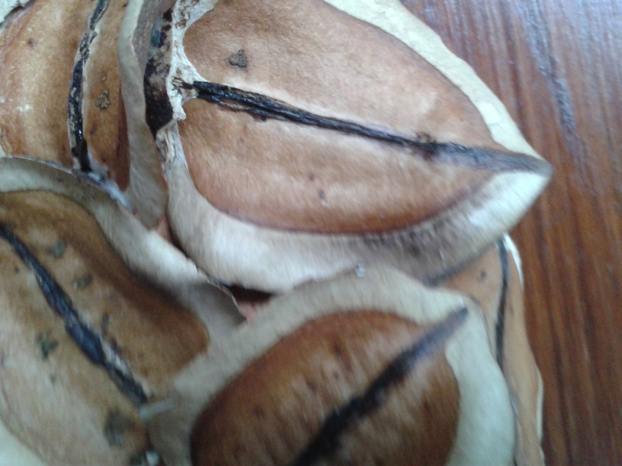 Este es el fruto del jacarandá, abierto y sin semillas. Fue colocado por todo el circulo.